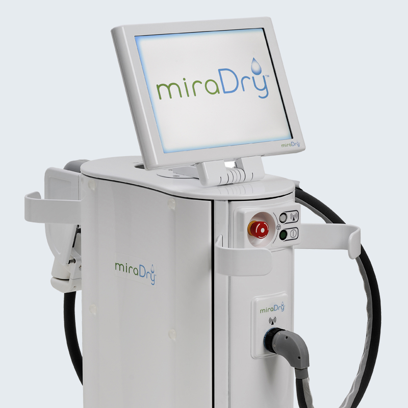 The miraDry® procedure (Miramar Labs, USA) is quick and non-invasive. The miraDry® System delivers precisely controlled energy to the region where the underarm sweat glands reside, and eliminates the sweat glands non-invasively.